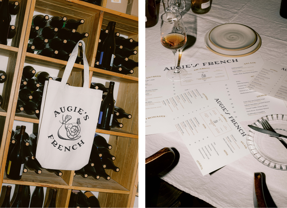 Augie’s French is a fun and playful brand, with the snail character at its heart. In collaboration with the Augie’s team we designed their brand, collateral, and website.